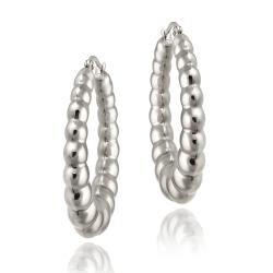 These beautiful earrings are the ultimate feminine touch to your everyday look. Crafted of stainless steel, these hoop earrings feature an oval ribbed design. Metal: Stainless steel Style: Hoop Finish: High polish Clasp: Saddleback Metal weight: 11.6 grams Earring dimensions: 9 mm wide x 36 mm in diameter All weights and measurements are approximate and may vary slightly from the listed information. See Treatment Guide for further information.